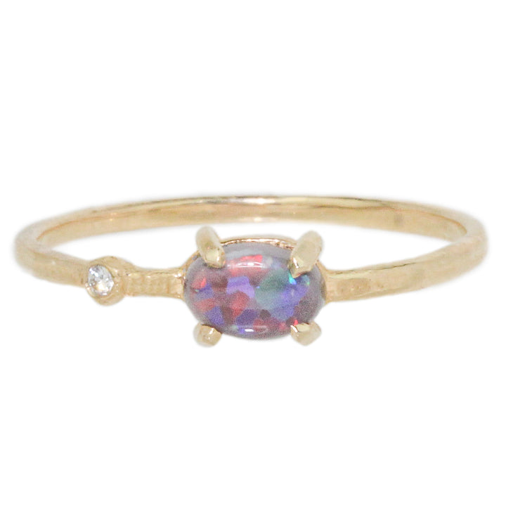 Handmade in New York One of a kind 14k yellow gold Oval Opal and White Diamond accent Complimentary resizing is...