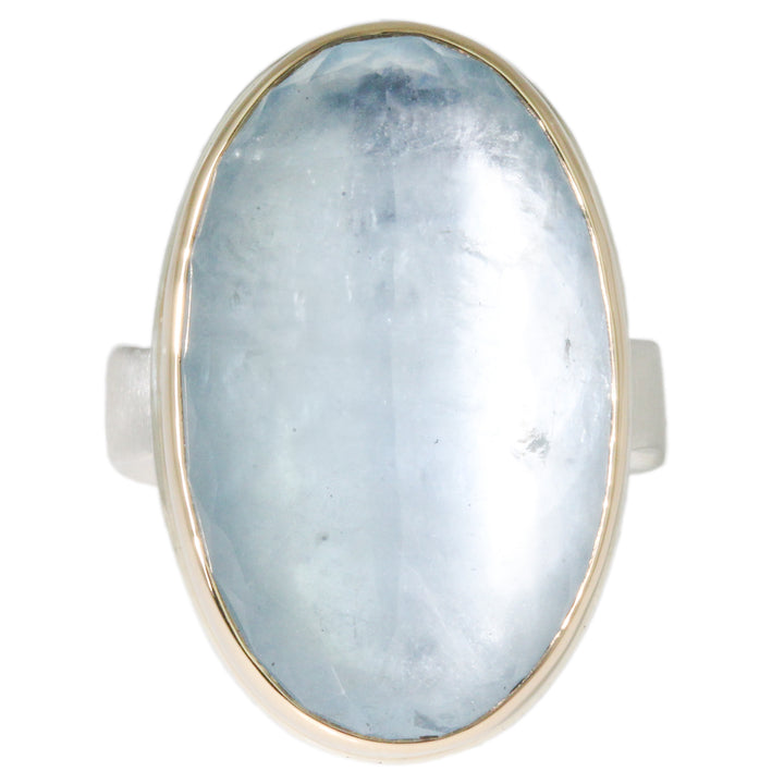 Handmade in Seattle One of a kind Sterling silver and 14k Yellow Gold Large oval faceted Aquamarine (~3/4”x 1 1/8")...